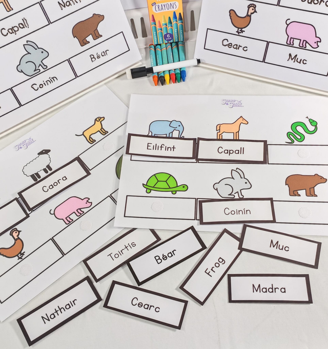 A three year old can have great fun with a little helping hand matching their animals together and colouring in, but a 6 year old learning to read can have just as much fun gaining independence to read and write the words themselves.
