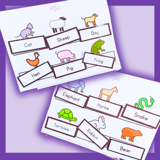 Match Together! Read the words to younger children to help them learn new vocabulary by matching the word and sticking it under the picture of the corresponding animals on the worksheet.