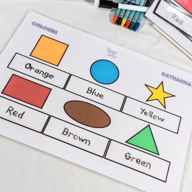 This activity pack will be one that grows with your child. It comes with 2 worksheets and the names of the colours that you have to match together, as well as two wipeable worksheets to practice writing the names of the colours and if they make a mistake, can wipe it off and start again!