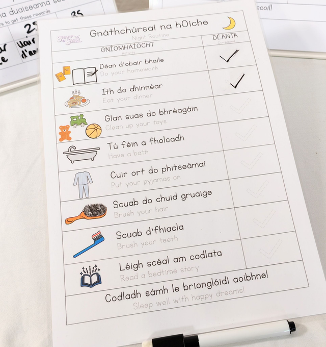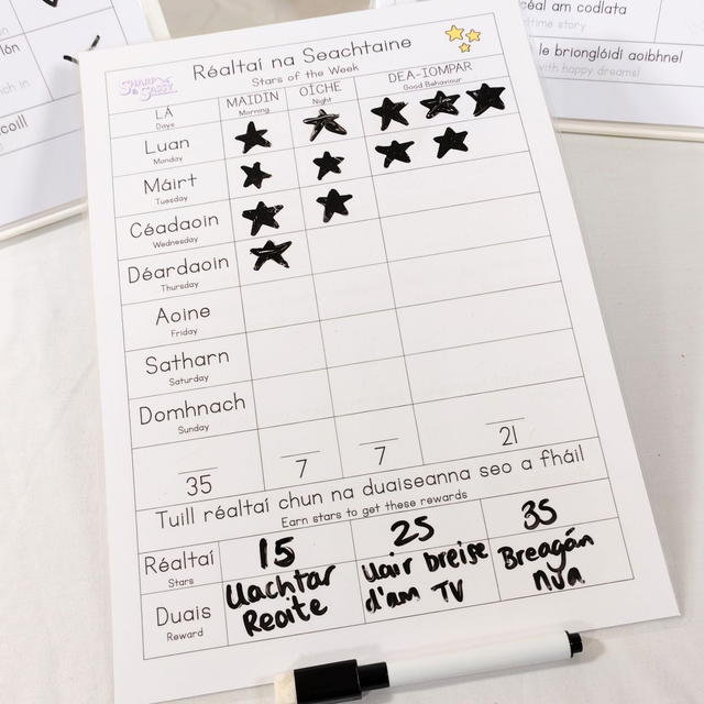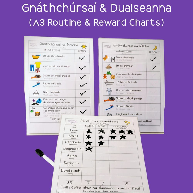These are available in English only or Irish & English dual language and in either A3 or A4 charts.