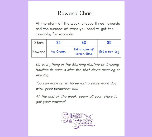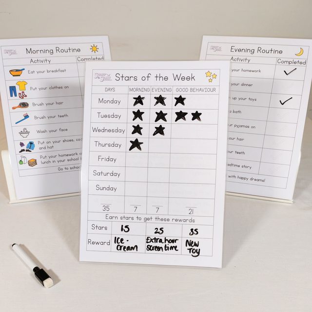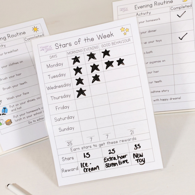 These charts will give your child positive reinforcement while developing good habits, becoming more independent and also do a little maths counting up the stars! Having the sliding scale system means that even if they don't have many stars towards the end of the week, they can still earn enough to get a small reward which will likely see their behaviour improve in the following weeks to earn bigger rewards.