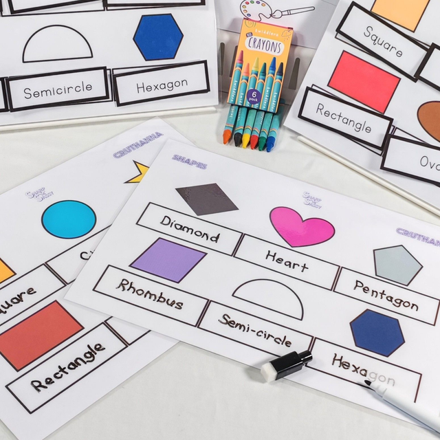 This activity pack will be one that grows with your child. It comes with 2 worksheets and the names of the shapes that you have to match together, as well as two wipeable worksheets to practice writing the names of the shapes and if they make a mistake, can wipe it off and start again!